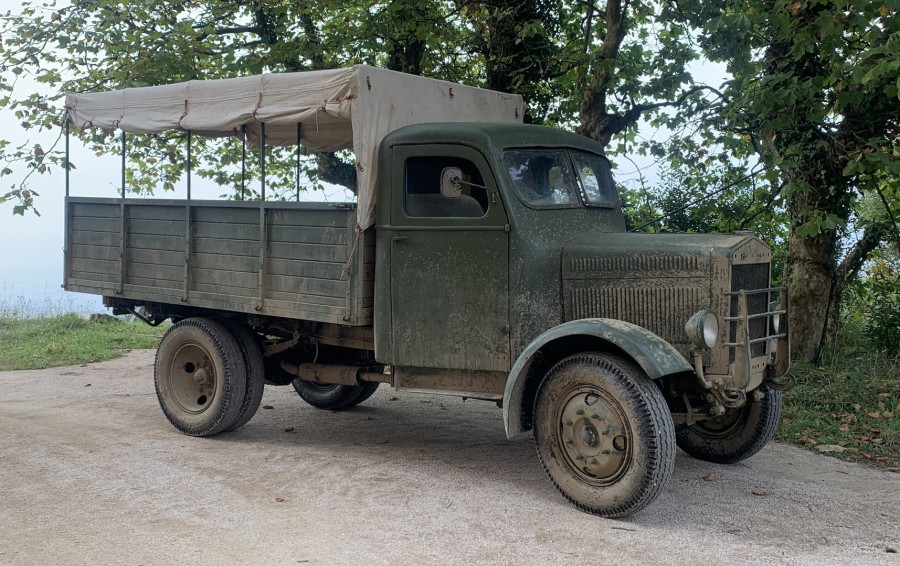 Tractor PAVESI P40 Utilizado por el CTV Italiano para transporte de piezas de artilleria, arrastrara un OBUS de montaña Schneider 105/11, este tractor participo en la campaña de la toma del escudo, participo en la pelicula la Vaquilla y la Bola Negra y estuvo funcionado hasta año 1980 como grua en Santander. Colección Fundación don Rodrigo